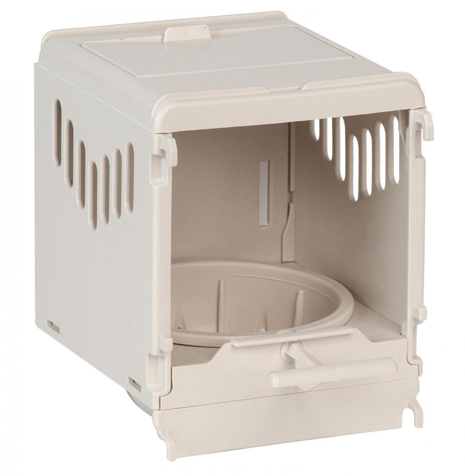 Nid extérieur en plastique beige avec coupole intérieure amovible conçu pour les canaris et oiseaux de même taille.